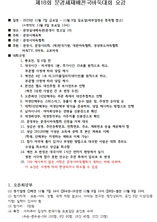 Á¦18ȸ ¹®°æ»õÀç¹èÀü±¹¹ÙµÏ´ëȸ ¿ä° | ´ëȸ°Ô½ÃÆÇ