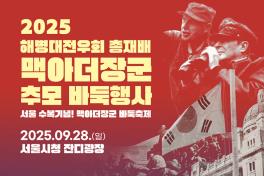 ¼­¿ï ¼öº¹À» ±â³äÇØ ÇÁ·Î±â»ç¿Í ÇÔ²²ÇÏ´Â ´ë±Ô¸ð ´Ù¸é±â Çà»ç°¡ ¿­¸°´Ù. ¡®2025 ÇØº´´ëÀü¿ìȸ ÃÑÀç¹è ¸Æ¾Æ´õÀ屺 Ã߸ð ´Ù¸é±â ¹ÙµÏÇà»ç¡¯°¡ 9¿ù 28ÀÏ ¿ÀÈÄ 2½ÃºÎÅÍ ¼­¿ï½Ãû ±¤Àå¿¡¼­ ÆîÃÄÁø´Ù. À̹ø ´Ù¸é±â Çà»ç...
