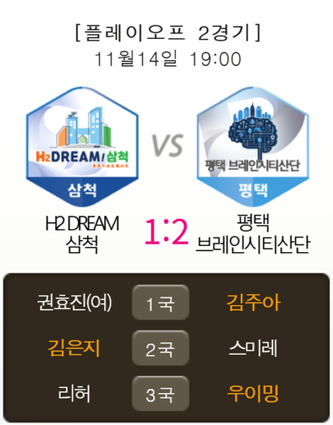 Ç÷¹ÀÌ¿ÀÇÁ 2Â÷ÀüÀÇ ±ÕÇüÀ» °¡Àå ¸ÕÀú ¹«³Ê¶ß¸° °ÍÀº H2 DREAM »ïôÀÇ ÁÖÀå ±èÀºÁö¿´´Ù. ±èÀºÁö´Â ÆòÅÃÀÇ ÁÖÀå ½º¹Ì·¹¿ÍÀÇ ¿¡À̽º ¸Â´ë°á¿¡¼ ½Â¸®ÇÏ¸ç ÆÀ¿¡ Áß¿äÇÑ ½ÂÁ¡À» ¼±¹°Çß´Ù. ±èÀºÁö´Â ÃÊ¹Ý ´Ù¼Ò ºÒ¸®ÇÑ È帧¿¡ °íÀüÇϴµíÇßÁö¸¸, Áß¹Ý Á»ó±Í ÀüÅõ¿¡¼ ½º¹Ì·¹°¡ °¼ö¸¦ ¿¬¹ßÇÑ °ÍÀÌ È±ÙÀ̾ú´Ù. ±èÀºÁö´Â ±âȸ¸¦ ³õÄ¡Áö ¾Ê°í È帧À» °¡Á®¿À´Âµ¥ ¼º°øÇß°í ±× ¿ì¼¼¸¦ ³¡±îÁö ÁöÄѳ»¸ç ½Â¸®¿¡ °ñÀÎÇß´Ù. ![]() ¡ã Ç÷¹ÀÌ¿ÀÇÁ 2°æ±â 2±¹ ÆòÅà ºê·¹ÀÎ½ÃÆ¼»ê´Ü ½º¹Ì·¹ vs H2 DREAM »ïô ±èÀºÁö(½Â)