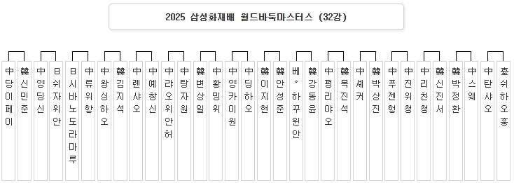 °³È¸½Ä µµÁß¿£ 32° ´ëÁø Ãß÷ÀÌ ÁøÇàµÆ´Ù. ±× °á°ú Çѱ¹ ·©Å· 1À§ ½ÅÁø¼ 9´ÜÀº Áß±¹ÀÇ ¸®Ä£Ã» 9´ÜÀ», 2À§ ¹ÚÁ¤È¯ 9´ÜÀº ½º¿þ 9´ÜÀ» ¸¸³ª´Â µî 7±¹ÀÇ ÇѤýÁßÀüÀÌ ¼º»çµÆ´Ù. ÀÌÁöÇö 9´ÜÀº ¾È¼ºÁØ 9´Ü°ú ÇѤýÇÑÀüÀ» ÆîÄ¡¸ç, °µ¿À± 9´ÜÀº ¿ùµåÁ¶¸¦ Åë°úÇÑ º£Æ®³²ÀÇ ÇϲÙÀ©¾È ¾Æ¸¶5´ÜÀ» ¸¸³´Ù. 2025 »ï¼ºÈÀç¹è ¿ùµå¹ÙµÏ¸¶½ºÅͽº´Â 9ÀÏ ¿¸®´Â º»¼± 32°ºÎÅÍ ÀÚ±¹ °£ ´ë°áÀ» ¾ø¾Ø ¹«ÀÛÀ§ °æÀïÀ» ÆîÄ¡¸ç, 16ÀϺÎÅÍ ½ÃÀÛÇÏ´Â °á½Â 3¹ø±â¿¡¼ ¿ì½ÂÀÚ¸¦ °¡¸°´Ù. »ï¼ºÈÀçÇØ»óº¸Çè(ÁÖ)ÀÌ ÈÄ¿øÇϰí Áß¾ÓÀϺ¸°¡ ÁÖÃÖÇÏ´Â 2025 »ï¼ºÈÀç¹è ¿ùµå¹ÙµÏ¸¶½ºÅͽºÀÇ ¿ì½Â»ó±ÝÀº 3¾ï ¿ø, ÁØ¿ì½Â »ó±ÝÀº 1¾ï ¿øÀÌ´Ù. »ý°¢½Ã°£Àº °¢ÀÚ 2½Ã°£¿¡ ÃÊÀбâ 1ºÐ 5ȸ¸¦ ÁØ´Ù. ![]() ¢Ã 2025 »ï¼ºÈÀç¹è ¿ùµå¹ÙµÏ¸¶½ºÅͽº 32° ´ëÁø ¹× »ó´ë ÀüÀû(¿ÞÂÊ ¼±¼ö ±âÁØ) ½Å¹ÎÁØ 9´Ü vs ´çÀÌÆäÀÌ 9´Ü(Áß±¹) - 1½Â 6ÆÐ ±èÁö¼® 9´Ü vs ¿Õ½ÌÇÏ¿À 9´Ü(Áß±¹) - ù ´ë°á º¯»óÀÏ 9´Ü vs Ȳ¹ÖÀ§ 8´Ü(Áß±¹) - 1½Â 0ÆÐ ÀÌÁöÇö 9´Ü vs ¾È¼ºÁØ 9´Ü – 6½Â 10ÆÐ °µ¿À± 9´Ü vs ÇϲÙÀ©¾È ¾Æ¸¶5´Ü(º£Æ®³²) - ù ´ë°á ¸ñÁø¼® 9´Ü vs Æã¸®¾ß¿À 9´Ü(Áß±¹) - ù ´ë°á ¹Ú»óÁø 9´Ü vs ¼ÎÄ¿ 9´Ü(Áß±¹) - ù ´ë°á ½ÅÁø¼ 9´Ü vs ¸®Ä£Ã» 9´Ü(Áß±¹) - 5½Â 5ÆÐ ¹ÚÁ¤È¯ 9´Ü vs ½º¿þ 9´Ü(Áß±¹) - 8½Â 8ÆÐ ![]() ![]() ![]() ![]() ![]() ![]() ¡ã ¾Æºü ±èÁö¼®. µþ°ú ÇÔ²² °³¸·½Ä¿¡ Âü¿©Çß´Ù.