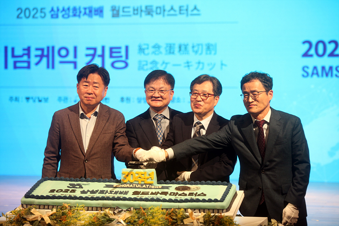 ¼¸¥ µ¹À» ¸ÂÀÌÇÑ »ï¼ºÈÀç¹è ¿ùµå¹ÙµÏ¸¶½ºÅͽº°¡ Á¦ÁÖµµ¿¡¼ °³¸·½Ä°ú ÇÔ²² ´éÀ» ¿Ã·È´Ù. 8ÀÏ Á¦ÁÖÆ¯º°ÀÚÄ¡µµ ¼±ÍÆ÷½Ã Èִнº ¾ÆÀÏ·£µå 2Ãþ ¾ÆÀÏ·£µå º¼·ë¿¡¼ 2025 »ï¼ºÈÀç¹è ¿ùµå¹ÙµÏ¸¶½ºÅͽº °³¸·½ÄÀÌ ¿·È´Ù. °³¸·½Ä¿¡´Â ÈÄ¿ø»ç »ï¼ºÈÀçÀÇ ¹é¼ÛÈ£ ºÎ»çÀå°ú ÃÖä¿ì °í¹®, ÁÖÃÖ»ç Áß¾ÓÀϺ¸ÀÇ ÀÌÇö»ó ³í¼³ÁÖ°£, ¿À¿µÈÆ Á¦ÁÖÆ¯º°ÀÚÄ¡µµÁö»ç, Áø°Ç±º(òçËïÏÚ) ÁÖÁ¦ÁÖÁß±¹ÃÑ¿µ»ç°ü ÃÑ¿µ»ç, ´ÙÄÉ¹Ì¾ß ¿äÄÚ ÀϺ»±â¿ø ÀÌ»çÀå, Çѱ¹±â¿øÀÇ Çѱ¹±â¿ø ¼È¿¼®¤ý¹ÚÁ¤Ã¤ ÀÌ»ç, ¾çÀçÈ£ »ç¹«ÃÑÀå, ÀÌâȣ 9´Ü µî ±Íºó°ú Âü°¡ ¼±¼ö 32¸í, ±âÀڴܰú °ü°èÀÚ µî 100¿© ¸íÀÌ Âü¼®ÇØ ¼¸¥ ¹øÂ° »ï¼ºÈÀç¹èÀÇ °³¸·À» ÃàÇÏÇß´Ù. Çà»ç´Â ´í½ºÆÀ ¡®È¦¸®¹ð¡¯ÀÇ ½ÄÀü °ø¿¬À» ½ÃÀÛÀ¸·Î Ãà»ç, 30Áֳ⠱â³ä ¿µ»ó »ó¿µ, ÄÉÀÌÅ© Ä¿ÆÃ½Ä, ´ëÁø Ãß÷ ¹× ÀÎÅͺä, ±â³ä ÃÔ¿µ ¼øÀ¸·Î ¾à 1½Ã°£ ¹Ý°¡·® ÁøÇàµÆ´Ù. ![]() ¡ã ¹é¼ÛÈ£ »ï¼ºÈÀç ºÎ»çÀåÀº "2025³â »ï¼ºÈÀç¹è ¿ùµå ¹ÙµÏ ¸¶½ºÅͽºÀÇ ¸·À» ¿©´Â ¶æ±íÀº ³¯, ÀÌ ÀÚ¸®¿¡ ¸ðÀ̽Џðµç ºÐµé²² °¨»ç Àλçµå¸³´Ï´Ù. º¯È¿Í Çõ½Å ±×¸®°í ¹ÙµÏÀÇ ¼¼°èȸ¦ ±âÄ¡·Î 1996³â¿¡ Ãâ¹üÇÑ »ï¼ºÈÀç¹è´Â ¹ÙµÏ ÆÒµéÀÇ º¯ÇÔ¾ø´Â »ç¶û°ú ÀÀ¿ø ¼Ó¿¡¼ ¼¼°è ÃÖ°íÀÇ ¹ÙµÏ ´ëȸ·Î ¿ÃÇØ Ãâ¹ü 30ÁÖ³âÀ» ¸ÂÀÌÇÏ¿´½À´Ï´Ù. ƯÈ÷ ¿ÃÇØ ´ëȸ´Â 30ÁÖ³âÀ» ±â³äÇÏ¿© ÀÚ¿¬°ú ÀüÅëÀÌ ¾î¿ì·¯Áø Á¦ÁÖµµ¿¡¼ ´õ¿í Ä¡¿ÇÑ °æÀïÀ» °ÅÄ£ ¼±¼öµéÀÌ ÇÑÀÚ¸®¿¡ ¸ðÀÌ´Â ¸¸Å ¸ðµç Âü°¡ÀÚµéÀÌ ÃÖ°íÀÇ °æ±â¸¦ ÆîÄ¥ °ÍÀ¸·Î ±â´ëµË´Ï´Ù.