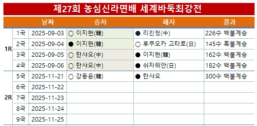À̷νá Çѱ¹Àº 4¸íÀÌ °í½º¶õÈ÷ ³²¾Ò°í, Áß±¹°ú ÀϺ»Àº 3¸í¾¿ ³²¾Ò´Ù. 22ÀÏ ¿ÀÈÄ 2½Ã¿£ 6±¹À¸·Î À̾îÁø´Ù. °µ¿À±ÀÌ 2¿¬½Â¿¡ µµÀüÇϸç ÀϺ»¿¡¼´Â ½Ã¹Ù³ë µµ¶ó¸¶·ç 9´ÜÀÌ µîÆÇÇÑ´Ù. »ó´ëÀüÀû¿¡¼ °µ¿À±ÀÌ 2½Â ¹«ÆÐ·Î ¾Õ¼±´Ù. ¢ß³ó½ÉÀÌ ÈÄ¿øÇϰí Çѱ¹±â¿øÀÌ ÁÖÃÖ¤ýÁÖ°üÇÏ´Â Á¦27ȸ ³ó½É½Å¶ó¸é¹è ¼¼°è¹ÙµÏÃÖ°ÀüÀÇ ¿ì½Â »ó±ÝÀº 5¾ï ¿øÀÌ´Ù. º»¼± 3¿¬½ÂºÎÅÍ´Â 1000¸¸ ¿øÀÇ ¿¬½Â »ó±ÝÀ» Áö±ÞÇϸç 1½ÂÀ» Ãß°¡ÇÒ ¶§¸¶´Ù 1000¸¸ ¿øÀÌ Àû¸³µÈ´Ù. »ý°¢½Ã°£Àº °¢ÀÚ 1½Ã°£¿¡ ÃÊÀбâ 60ÃÊ 1ȸ´Ù. Çѱ¹ : ½ÅÁø¼¤ý¹ÚÁ¤È¯¤ý°µ¿À±(1½Â)¤ý¾È¼ºÁØ / (Å»¶ô)ÀÌÁöÇö(2½Â) Áß±¹ : µùÇÏ¿À¤ý¿Õ½ÌÇÏ¿À¤ý¾çÄ«ÀÌ¿ø/ (Å»¶ô)¸®Ä£Ã»¤ýź»þ¿À(2½Â) ÀϺ» : ÀÌÄ¡¸®Å° ·á¤ýÀ̾߸¶ À¯Å¸¤ý½Ã¹Ù³ë µµ¶ó¸¶·ç / (Å»¶ô)½¬ÀÚÀ§¾È¤ýÈÄÄí¿ÀÄ«°íŸ·Î ![]() ![]() ¡ã ºÎ»ê È£ÅÚ³ó½ÉÀº 2Â÷ÀüÀÇ ¹«´ë´Ù. °µ¿À±ÀÌ ¼÷¼Ò¿¡¼ À̵¿ÇØ 2Ãþ¿¡ ¸¶·ÃµÈ Ưº°´ë±¹½Ç·Î ÇâÇϰí ÀÖ´Ù.