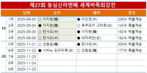 Áß±¹ ź»þ¿ÀÀÇ 3¿¬½ÂÀ» ÀúÁöÇß´ø °µ¿À± 9´ÜÀÌ 2¿¬½Â¿¡´Â À̸£Áö ¸øÇß´Ù. 22ÀÏ ºÎ»ê µ¿·¡±¸ È£ÅÚ³ó½É¿¡¼ ¿¸° Á¦27ȸ ³ó½É½Å¶ó¸é¹è ¼¼°è¹ÙµÏÃÖ°Àü 2Â÷Àü 6±¹¿¡¼ Çѱ¹ µÎ ¹øÂ° ¼±¼ö °µ¿À± 9´ÜÀÌ ÀϺ» ¼¼ ¹øÂ° ¼±¼ö ½Ã¹Ù³ë µµ¶ó¸¶·ç 9´ÜÀ» ¸Â¾Æ 177¼ö ¸¸¿¡ ¹éÀ¸·Î ºÒ°èÆÐÇß´Ù. ±×¾ß¸»·Î ±ÕÇüÀ» ÀÌ·ð´ø ÃʹÝÀ» Áö³ª Áß¾Ó °æ°è¸¦ ¾î¶»°Ô ±¸ÃàÇÏ´À³Ä¸¦ ³õ°í µÎ ±â»çÀÇ Áö·« ½Î¿òÀÌ Ä¡¿Çß´Ù. ÀÌÈÄ ¿ìº¯ Èæ Áø¿µ¿¡ °µ¿À±ÀÌ ±í°Ô ħÅõÇÑ ÀÌÈÄ ¾î·Á¿î ÀüÅõ°¡ °è¼Ó À̾îÁ³´Âµ¥, ½Ã¹Ù³ë µµ¶ó¸¶·ç°¡ ¿ì¼¼Çß´Ù. ÇÏÁö¸¸ Á¡Â÷ ½Ã°£ÀÌ È带¼ö·Ï °µ¿À±ÀÌ Ãß°Ý¿¡ ¼º°øÇß°í ¾Õ¼´Â ¼ø°£±îÁö ã¾Æ¿Ô´Ù. ±×·¨´Âµ¥, ¸·ÆÇ¿¡ ÇϺ¯ÀÌ ²÷°Ü ³ª°¡´Â ¼ö¸¦ ±ô¹ÚÇÏ¸é¼ Å« ¼Õ½ÇÀ» º¸¾Ò°í, °á±¹ ³ªÁß¿£ ½ÂºÎ¸¦ °è¼Ó °É¾îº¸´Ù°¡ ȸº¹ÇÏÁö ¸øÇß´Ù. ½Ã¹Ù³ë µµ¶ó¸¶·ç°¡ ÀϺ»¿¡ ù ½Â¸®¸¦ ¼±»çÇß´Ù. 23ÀÏ¿¡´Â 7±¹À¸·Î À̾îÁö¸ç Áß±¹¿¡¼´Â ¾çÄ«ÀÌ¿ø 9´ÜÀÌ ÃâÀüÇÑ´Ù. Áß±¹ 20À§ ¾çÄ«ÀÌ¿ø°ú ÀϺ» ¡®½Ê´Ü¡¯ ŸÀÌÆ² º¸À¯ÀÚ ½Ã¹Ù³ë µµ¶ó¸¶·çÀÇ »ó´ëÀüÀûÀº ¾çÄ«ÀÌ¿øÀÌ 1½Â(Áß±¹°©Á¶¸®±×)À¸·Î ¾Õ¼±´Ù. À̷νá ÇÑÁßÀÏ »ï±¹Àº ¸ðµÎ 3¸í¾¿ ³²¾Ò´Ù. ¢ß³ó½ÉÀÌ ÈÄ¿øÇϰí Çѱ¹±â¿øÀÌ ÁÖÃÖ¤ýÁÖ°üÇÏ´Â Á¦27ȸ ³ó½É½Å¶ó¸é¹è ¼¼°è¹ÙµÏÃÖ°ÀüÀÇ ¿ì½Â »ó±ÝÀº 5¾ï ¿øÀÌ´Ù. º»¼± 3¿¬½ÂºÎÅÍ´Â 1000¸¸ ¿øÀÇ ¿¬½Â »ó±ÝÀ» Áö±ÞÇϸç 1½ÂÀ» Ãß°¡ÇÒ ¶§¸¶´Ù 1000¸¸ ¿øÀÌ Àû¸³µÈ´Ù. »ý°¢½Ã°£Àº °¢ÀÚ 1½Ã°£¿¡ ÃÊÀбâ 60ÃÊ 1ȸ´Ù. Çѱ¹ : ½ÅÁø¼¤ý¹ÚÁ¤È¯¤ý¾È¼ºÁØ / (Å»¶ô)ÀÌÁöÇö(2½Â)¤ý°µ¿À±(1½Â) Áß±¹ : µùÇÏ¿À¤ý¿Õ½ÌÇÏ¿À¤ý¾çÄ«ÀÌ¿ø/ (Å»¶ô)¸®Ä£Ã»¤ýź»þ¿À(2½Â) ÀϺ» : ÀÌÄ¡¸®Å° ·á¤ýÀ̾߸¶ À¯Å¸¤ý½Ã¹Ù³ë µµ¶ó¸¶·ç(1½Â) / (Å»¶ô)½¬ÀÚÀ§¾È¤ýÈÄÄí¿ÀÄ«°íŸ·Î ![]() ![]() ![]() ¡ã ½Ã¹Ù³ë µµ¶ó¸¶·ç°¡ ¸ÕÀú ´ë±¹Àå ±Ùó¿¡ ³ªÅ¸³µ´Ù.