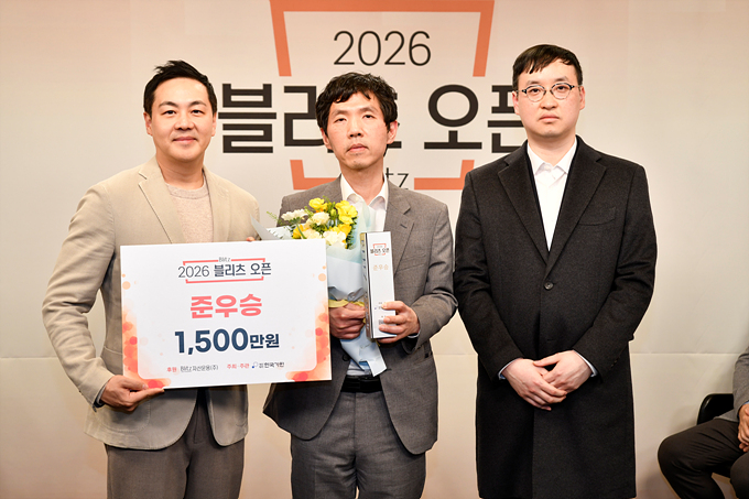 ´ë±¹ Á÷ÈÄ ¿¸° ½Ã»ó½Ä¿¡´Â ±è¼º¸¸ ºí¸®Ã÷Àκ£½ºÆ®¸ÕÆ® ȸÀå°ú ±èÅÂ±Ô ºí¸®Ã÷ÀÚ»ê¿î¿ë ´ëÇ¥¸¦ ºñ·ÔÇØ ¾çÀçÈ£ Çѱ¹±â¿ø »ç¹«ÃÑÀå, Á¶Çѽ ÇÁ·Î±â»çÇùȸÀå µîÀÌ Âü¼®ÇØ ÀÚ¸®¸¦ ºû³Â´Ù. ¿ì½Â ½Ã»óÀ» ¸ÃÀº ±è¼º¸¸ ȸÀåÀº ±è俵 9´Ü¿¡°Ô »ó±Ý 5000¸¸ ¿ø°ú Æ®·ÎÇǸ¦ Àü´ÞÇßÀ¸¸ç, ÁØ¿ì½Â ½Ã»óÀ» ¸ÃÀº ±èÅÂ±Ô ´ëÇ¥´Â ÀÌâȣ 9´Ü¿¡°Ô »ó±Ý 1500¸¸ ¿ø°ú Æ®·ÎÇǸ¦ °¢°¢ ¼ö¿©Çß´Ù. 2026 ºí¸®Ã÷ ¿ÀÇ¿¡´Â Çѱ¹±â¿ø ¼Ò¼Ó ÇÁ·Î±â»ç Áß ¸¸ 45¼¼ ÀÌ»ó(1981³â 12¿ù 31ÀÏ ÀÌÀü Ãâ»ýÀÚ)ÀÇ ³²ÀÚ ±â»ç¿Í Àü ¿¬·ÉÀÇ ¿©ÀÚ ±â»ç, ±×¸®°í ¾Æ¸¶Ãß¾î ¼±¼ö°¡ ÃâÀüÇß´Ù. Áö³ 1¿ù ¾Æ¸¶ ¼±¹ßÀüÀ» Åë°úÇÑ 5¸í°ú ÇÁ·Î ¼±¹ßÀüÀ» Åë°úÇÑ 17¸í, ¿©±â¿¡ ½ÃµåÀÚ 10¸íÀÌ ÇÕ·ùÇØ º»¼± 32° Åä³Ê¸ÕÆ®¸¦ ¹ú¿´°í, ÃÖÁ¾ÀûÀ¸·Î ±è俵 9´Ü°ú ÀÌâȣ 9´ÜÀÌ °á½Â¿¡ ¿Ã¶ó 3¹ø±â·Î ¿ì½ÂÀÚ¸¦ °¡·È´Ù. 2026 ºí¸®Ã÷ ¿ÀÇÂÀº ºí¸®Ã÷ÀÚ»ê¿î¿ë(ÁÖ)°¡ ÈÄ¿øÇϰí Çѱ¹±â¿øÀÌ ÁÖÃÖ¡¤ÁÖ°üÇß´Ù. ¿ì½Â »ó±Ý 5000¸¸ ¿ø, ÁØ¿ì½Â »ó±Ý 1500¸¸ ¿øÀÌ ¼ö¿©µÆÀ¸¸ç, »ý°¢½Ã°£Á¦µµ´Â, ½Ã°£Àû¸³Àå½ÄÀ» Àû¿ëÇØ °¢ÀÚ ±âº»½Ã°£ 10ºÐ¿¡ Âø¼öÇÒ ¶§¸¶´Ù Ãß°¡·Î 20Ãʸ¦ ÁÖ¾ú´Ù. ![]() ¡ã 2026 ºí¸®Ã÷ ¿ÀÇ ÁØ¿ì½Â ½Ã»ó »çÁø ºí¸®Ã÷ ÀÚ»ê¿î¿ë ±èÅÂ±Ô ´ëÇ¥(¿ÞÂʺÎÅÍ), ÀÌâȣ 9´Ü, Á¶Çѽ ÇÁ·Î±â»çÇùȸÀå.