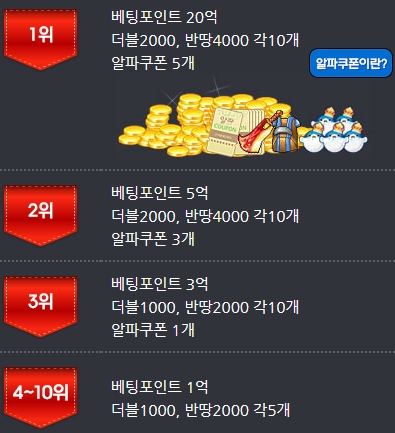 ¡¤   Â¯±¸¿ÀÀÌ ------------->  ÆÄ¿öÁ¾ÇÕ¼¼Æ® (´õºí5000 10°³, ¹Ý¶¥ 1¾ï 10°³, º¸³Ê½º 7¾ï 5õ¸¸Æ÷ÀÎÆ®)