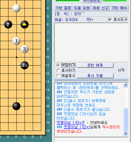 [±×¸²23] ¸ðµç »ç¼®À» Ŭ¸¯ ÈÄ ÁöÁ¤ ¸¶Ä§ ¹öưÀ» Ŭ¸¯ÇÕ´Ï´Ù. ºòÀÌ ÀÖ´Â °÷Àº ±×¸²23°ú °°ÀÌ °ø¹è¸¦ ¸¶¿ì½º·Î Ŭ¸¯ÇÏ¸é »¡°£»öÀ¸·Î Ç¥½Ã°¡ µË´Ï´Ù. [±×¸²24] »ó´ë¹æÀÌ ÁöÁ¤ÇÑ »ç¼®À» È®ÀÎ ÈÄ ¿Ã¹Ù¸£°Ô »ç¼®ÁöÁ¤ÀÌ µÈ °æ¿ì¿¡´Â ¼ö¶ôÀ» ÇÕ´Ï´Ù. »ç¼®ÁöÁ¤ °á°ú·Î Áý¼ö°¡ °è»êµÇ¾îÁ® Ç¥½ÃµË´Ï´Ù. ¿Ã¹Ù¸¥ °á°ú°¡ ³ª¿ÔÀ» °æ¿ì¿¡ ¡®È®ÀΡ¯ ¹öưÀ» Ŭ¸¯ÇÕ´Ï´Ù. °è°¡°á°ú°¡ ÀÌ»óÇÒ °æ¿ì¿¡´Â Ãë¼ÒÇÏ°í »ç¼®ÁöÁ¤ »óŸ¦ ´Ù½Ã È®ÀÎÇØº¾´Ï´Ù. Èæ, ¹éÀÇ »ç¼®ÁöÁ¤°ú µ¿ÀÇ °úÁ¤À» °ÅÄ£ ÈÄ ½ÂÆÐ°á°ú ¸Þ¼¼Áö°¡ ³ª¿À°Ô µË´Ï´Ù.