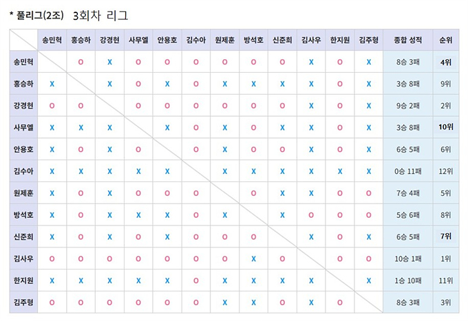 ¹ÙµÏ ÀÎÀç ¾ç¼ºÀÇ »ê½ÇÀÎ µµÀåÀÌ Á÷Á¢ ±âȹÇϰí Áß°èÇÑ ÃÖÃÊÀÇ ÇÁ·Î¾Ï¸®±×°¡ ¹ÙµÏ°è¿¡ ½Å¼±ÇÑ Ãæ°ÝÀ» ´øÁö°í ÀÖ´Ù. Áö³ 4¿ù ¸·À» ¿Ã·Á 6°³¿ù°£ÀÇ ´ëÀåÁ¤À» ÆîÄ£ 'Ãæ¾Ï ÇÁ·Î¾Ï¸®±×'°¡ 10¿ù ÃÊ 3ȸÂ÷ ¸®±×¸¦ ³¡À¸·Î ÃÖÁ¾ ¿ÕÁß¿ÕÀü¿¡ ÁøÃâÇÒ 16¸íÀÇ ¸í´ÜÀ» È®Á¤Çß´Ù. ±× °á°ú, ÇÁ·Î¿Í ¾Æ¸¶Ãß¾îÀÇ °æ°è¸¦ Çã¹°°Ú´Ù´Â ´çÃÊÀÇ ±âȹ Àǵµ¸¦ ³Ñ¾î, ¾Æ¸¶Ã߾ ÇÁ·Î¸¦ À§ÇùÇÏ´Â ¡®µ¹Ç³¡¯ÀÇ Áø¿øÁö°¡ µÇ¾ú´Ù. À̹ø ¸®±× ÃÖ´ëÀÇ À̺¯Àº ¾Æ¸¶Ãß¾î ±è»ç¿ì ¼±¼ö°¡ ÀÏÀ¸Ä×´Ù. ±è»ç¿ì ¼±¼ö´Â 1~3ȸÂ÷ ¸®±×¿¡¼ ¿¬´Þ¾Æ ÃÖ»óÀ§±Ç ¼ºÀû(Á¶2À§, 1À§, 1À§)À» °ÅµÎ¸ç, ÀïÀïÇÑ ÇÁ·Î±â»çµéÀ» Á¦Ä¡°í ´©Àû Á¡¼ö Àüü 2À§·Î ¿ÕÁß¿ÕÀü¿¡ ÁøÃâÇß´Ù. Àüü 1À§¸¦ Â÷ÁöÇÑ »óÀ§ ·©Ä¿ ±è´Ùºó ÇÁ·Î¿Í °ÅÀÇ ´ëµîÇÑ ¼ºÀûÀ» ±â·ÏÇÑ °ÍÀ¸·Î, ¾Æ¸¶Ãß¾î ÃÖ°ÀÚÀÇ Àú·ÂÀ» À¯°¨¾øÀÌ °ú½ÃÇß´Ù. ¾Æ¸¶Ãß¾îÀÇ ¹Ý¶õÀº ¿©±â¼ ±×Ä¡Áö ¾Ê´Â´Ù. ±è»ç¿ì ¼±¼ö¸¦ ÇʵηΠÃÖÀ±»ó(11À§), °ÇöÀç(14À§), º¯Á¤¹Î(16À§) ¼±¼ö±îÁö ÃÑ 4¸íÀÇ ¾Æ¸¶Ã߾ 16°¿¡ À̸§À» ¿Ã·È´Ù. ÃÖÁ¾ Åä³Ê¸ÕÆ® ÁøÃâÀÚÀÇ 4ºÐÀÇ 1À» ¾Æ¸¶Ã߾ Â÷ÁöÇÑ °ÍÀÌ´Ù. ¹°·Ð ÇÁ·ÎÀÇ °ü·ÏÀº ¿©ÀüÇß´Ù. Âü°¡ ÇÁ·Î Áß ÃÖ»óÀ§ ·©Ä¿·Î ²ÅÈù ±è´Ùºó ÇÁ·Î´Â 6°³¿ù ³»³» ¾ÐµµÀûÀÎ ±â·®À» ¼±º¸ÀÌ¸ç °¡º±°Ô Àüü 1À§¸¦ Â÷ÁöÇØ ÃÖ°ÀÚÀÓÀ» ÀÔÁõÇß´Ù. ÀÌó·³ ³ôÀº ¼öÁØÀÇ °æÀï ¼Ó¿¡¼ ¾Æ¸¶Ãß¾î ¼±¼öµéÀÌ °ÅµÐ ¼º°ú´Â ´õ¿í °ªÁö´Ù. ¸®±× µµÁß¿£ ¾Æ¸¶Ãß¾î ¼±¼ö Áß ÇÁ·Î°¡ µÈ »ç·Êµµ ÀÖ¾ú´Ù. ¼Û¹ÎÇõ ¼±¼ö´Â ¸®±×°¡ ÇÑâÀÌ´ø 2ȸÂ÷ µµÁß Á¦3ȸ ³°¡¹è ÅëÇÕ¿¹¼± °á½Â¿¡ ¿À¸£¸ç ÇÁ·Î ÀÔ´Ü¿¡ ¼º°ø, ¸®±×ÀÇ °¡Ä¡¸¦ ½º½º·Î Áõ¸íÇß´Ù. À¯ÀÏÇÑ ¿¬±¸»ý Âü°¡ÀÚÀÎ º¯Á¤¹Î ¼±¼ö´Â ¸¶Áö¸· 3ȸÂ÷ ¸®±×¿¡¼ 3À§¸¦ Â÷ÁöÇÏ´Â Àú·ÂÀ» º¸ÀÌ¸ç ±ØÀûÀ¸·Î ¼øÀ§¸¦ ²ø¾î¿Ã·Á Àüü 16À§·Î ¿ÕÁß¿ÕÀüÇà ¸·Â÷¿¡ ž½ÂÇß´Ù. ¸®±×¸¦ ÃѰýÇÑ Ãæ¾Ï¹ÙµÏµµÀå Á¶À翵 »ç¹üÀº "6°³¿ù°£ÀÇ ¸®±×ÀüÀ» ÅëÇØ ¾Æ¸¶Ãß¾î¿Í ¿¬±¸»ý Âü°¡ÀÚµéÀº ±ÍÁßÇÑ °æÇèÀ» ½×¾ú°í, ÇÁ·Î ¼±¼öµé ¶ÇÇÑ Ä¡¿ÇÑ ½ÂºÎ¸¦ ÆîÄ¡¸ç µµÀå Çлýµé¿¡°Ô ÁÁÀº ±Í°¨ÀÌ µÇ¾ú´Ù"°í ¸»Çß´Ù. ¸®±×´Â 4¿ùºÎÅÍ 10¿ù ÃʱîÁö ¾à 6°³¿ù µ¿¾È ¿·ÈÀ¸¸ç ÇÁ·Î±â»ç 12¸í°ú ¾Æ¸¶Ãß¾î 24¸íÀÌ Âü°¡ÇÏ´Â ÃÑ 36ÀÎ ¸®±×·Î ¿î¿µµÇ¾ú´Ù. °¢ ȸÂ÷ÀÇ ¼ºÀû¿¡ µû¶ó ¼øÀ§ Á¡¼ö°¡ Â÷µî Àû¿ëµÇ°í, ½Â¸® ½Ã 3Á¡ÀÇ Ãß°¡ Á¡¼ö°¡ ºÎ¿©µÇ¾ú´Ù. µ¿Á¡ ½Ã¿¡´Â Æò±Õ ¼øÀ§, Æò±ÕÀÌ °°À» °æ¿ì¿£ ³ôÀº ¼øÀ§¸¦ ±âÁØÀ¸·Î ¼øÀ§°¡ °áÁ¤µÇ´Â ¹æ½Ä.´Ù. °æ±â´Â ±âº»½Ã°£ 20ºÐ¿¡ ÃÊÀбâ 20Ãʸ¦ Ãß°¡ÇÏ´Â ÇǼйæ½Ä, Àü °æ±â È£¼±À¸·Î Ä¡·¶´Ù. ½Ã¼±Àº ¿À´Â 10¿ù 17ÀϺÎÅÍ ½ÃÀ۵Ǵ ¿ÕÁß¿ÕÀü Åä³Ê¸ÕÆ®·Î ÇâÇÑ´Ù. 16°°ú 8°Àº 17ÀÏ, 4°Àº 24ÀÏ¿¡ ¿¸®¸ç, ´ë¸ÁÀÇ °á½Â 3¹ø±â´Â 31ÀÏ¿¡ Ä¡·¯Áø´Ù. ¿ÕÁß¿ÕÀüÀº ÃÖÁ¾ ¿ì½ÂÀÚ¿¡°Ô´Â 300¸¸¿ø, ÁØ¿ì½ÂÀÚ¿¡°Ô´Â 150¸¸¿øÀÇ »ó±ÝÀÌ, 4°(2¸í)Àº 80¸¸¿ø, 8°(4¸í)Àº 30¸¸¿ø, 16°(8¸í)Àº 20¸¸¿øÀÌ Áö±Þ µÈ´Ù. ¸¶Áö¸· ¹«´ë¿¡¼ °ú¿¬ ¾Æ¸¶Ãß¾î µ¹Ç³ÀÌ À̾îÁú ¼ö ÀÖÀ»Áö¿¡µµ ¹ÙµÏ°èÀÇ À̸ñÀÌ ÁýÁߵȴÙ. ![]() ![]() ![]() ![]() ![]() ![]() ![]() ![]() ![]() ![]() ![]() ![]() ![]() ![]() ![]() ![]() ![]() ![]() ![]() ![]() ![]() ![]() ![]() ![]() ![]() ![]() ![]() ![]() ![]() ![]() |