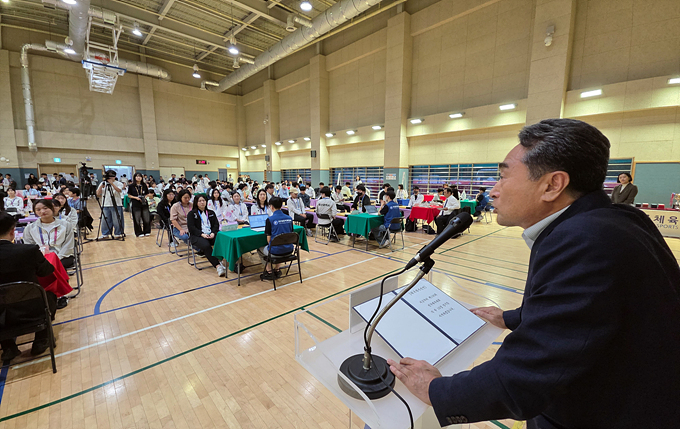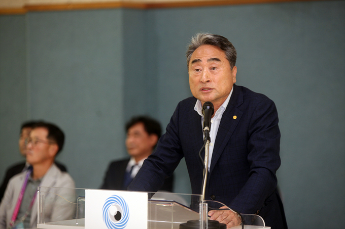°³È¸½Ä¿¡¼­ ÇϱÙÀ² ´ëÇѹٵÏÇùȸ ȸÀåÀº ¡°Àü±¹Ã¼À°´ëȸ°¡ ¾Æ¸§´Ù¿î Ç×±¸ µµ½Ã ºÎ»ê¿¡¼­ °³ÃÖµÈ °ÍÀ» Áø½ÉÀ¸·Î ÃàÇÏÇÑ´Ù. À̹ø ´ëȸ¸¦ À§ÇØ ¿­°ú ¼ºÀǸ¦ ´ÙÇØÁֽŠ´ëȸ °ü°èÀںеéÀÇ ³ë°í¿¡µµ ±íÀº °¨»çÀÇ ¸»¾¸À» µå¸°´Ù. ÀÌ ÀÚ¸®¿¡ °è½Å ¿©·¯ºÐÀº °¢ ½Ãµµ ´ëÇ¥ÇÏ´Â ÀÚ¶û½º·¯¿î ¼±¼öµéÀÌ´Ù. °¥°í´ÛÀº ±â·®À» ¸¶À½²¯ ¹ßÈÖÇϽðí Á¤Á¤´ç´çÇÏ°Ô ½ÂºÎ¸¦ °Ü·ç¸ç ½ÂÆÐ¸¦ ¶°³ª ¼­·Î¸¦ Á¸ÁßÇÏ°í ¹ÙµÏÀ» ÅëÇØ ¿ìÁ¤À» ³ª´©´Â ½ºÆ÷Ã÷¸Ç½ÊÀ» º¸¿©Áֱ⠹ٶõ´Ù. À̹ø Àü±¹Ã¼À°´ëȸ°¡ ¸ðµç ¹ÙµÏÀεéÀÇ ÃàÁ¦ÀÇ ÀåÀÌ µÇ°í, ³ª¾Æ°¡ ¹ÙµÏÀÇ Àúº¯ È®´ë¿¡ ±â¿©Çϱ⸦ ¹Ù¶õ´Ù. ¼±¼ö ¿©·¯ºÐÀÇ °Ç½ÂÀ» ±â¿øÇÑ´Ù¡±°í ¸»Çß´Ù.