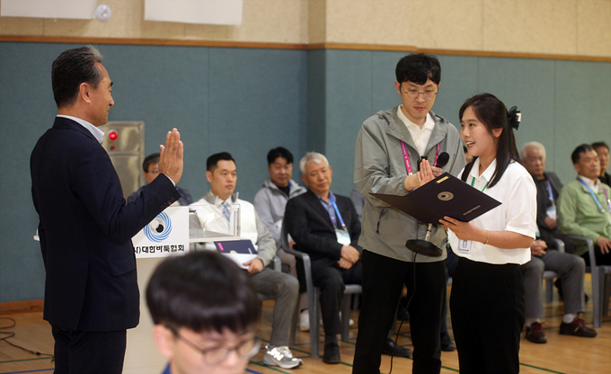 ºÎ»ê±¤¿ª½Ã ´ëÇ¥ÀÎ À±³²±â ¼±¼ö¿Í ¹ÚÇÑ¼Ö ¼±¼ö´Â Àüü ¼±¼ö¸¦ ´ëÇ¥ÇÏ¿© ´ëȸ ±ÔÁ¤À» ÁؼöÇϰí Á¤Á¤´ç´çÈ÷ °æ±â¿¡ ÀÓÇÒ °ÍÀ» ¼±¼­Çß´Ù. ÀÌ¾î ¼º¹Î¾Æ ½ÉÆÇ ¿ª½Ã ¸ðµç Áö½ÄÀ» µ¿¿øÇØ °øÁ¤ÇÏ°Ô Á÷¹«¸¦ ¼öÇàÇÒ °ÍÀ» ¸Í¼¼Çß´Ù.