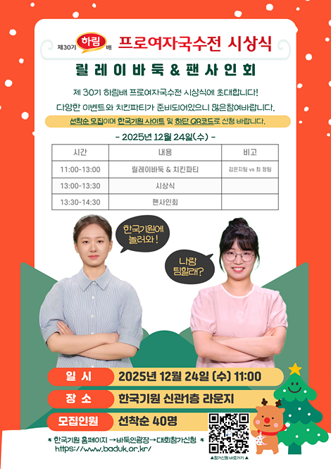 16ÀÏ ½ÃÀÛÇÏ´Â °á½Â 3¹ø±â·Î ¿ì½ÂÀÚ °¡·Á 24ÀÏ ½Ã»ó½Ä¿¡´Â 30ÁÖ³â ¸Â¾Æ ´Ù¾çÇÑ ÆÒ À̺¥Æ® ¸¶·Ã ±èÀºÁö-ÃÖÁ¤ ´ë°áÀº ¾ÆÁ÷ ³¡³ªÁö ¾Ê¾Ò´Ù. 16ÀϺÎÅÍ ¼¿ï ¼ºµ¿±¸ ¸¶Àå·Î Çѱ¹±â¿ø ¹ÙµÏTV ½ºÆ©µð¿À¿¡¼ ±èÀºÁö 9´Ü°ú ÃÖÁ¤ 9´ÜÀÌ Á¦30±â Çϸ²¹è ÇÁ·Î¿©ÀÚ±¹¼öÀü °á½Â3¹ø±â¸¦ ÆîÄ£´Ù. ÈÄ¿ø»ç ½Ãµå¸¦ ¹Þ¾Æ º»¼±¿¡ Á÷ÇàÇÑ ±èÀºÁö´Â 16°ºÎÅÍ À¯ÁÖÇö 3´Ü¤ýÁ¶½Â¾Æ 7´Ü¤ý¿ÀÀ¯Áø 9´ÜÀ» Â÷·Ê·Î ²ª°í ÀÌ ´ëȸ ù °á½Â ÁøÃâ¿¡ ¼º°øÇß´Ù. Á¾Àü ÃÖ°í ¼ºÀûÀº 2022³â Á¦27±â ´ëȸ º»¼± 8°ÀÌ´Ù. Àü±â ´ëȸ 4°¿¡ ¿Ã¶ó ½Ãµå¸¦ ¹ÞÀº ÃÖÁ¤µµ º»¼± 16°¿¡¼ Ãâ¹ßÇØ ÀüÀ¯Áø Ãʴܤý±è°æÀº 5´Ü¤ý½º¹Ì·¹ 4´ÜÀ» ¿¬ÆÄÇÏ°í °á½Â¿¡ ¿Ã¶ú´Ù. ÃÖÁ¤ 9´ÜÀº Çϸ²¹è¿¡¼ Åë»ê 6ȸ(22¤ý23¤ý24¤ý25¤ý27¤ý28ȸ) ¿ì½Â ±â·ÏÀ» º¸À¯Çϰí ÀÖ´Ù.±èÀºÁö¿Í ÃÖÁ¤Àº À̹ø Çϸ²¹è¿¡¼ ¿ÃÇØ ¼¼ ¹øÂ° °á½Â ¸Â´ë°áÀ» ÆîÄ£´Ù. ¿Ã 5¿ù ´ÚÅÍÁö ¿©ÀÚ ÃÖ°í±â»ç °áÁ¤Àü¿¡¼´Â ÃÖÁ¤ÀÌ, 12¿ù ¿Àû¿ø¹è ¼¼°è¿©Àڹٵϴëȸ¿¡¼´Â ±èÀºÁö°¡ ¿ì½ÂÇϸç ÇÑ Â÷·Ê¾¿ ŸÀÌÆ²À» ÁÖ°í¹Þ¾Ò´Ù. ±èÀºÁö 9´Ü°ú ÃÖÁ¤ 9´ÜÀº ¿©ÀÚ ·©Å·µµ 1À§¿Í 2À§¸¦ ¿À°¡¸ç ¹ÚºùÀÇ °æÀïÀ» ÆîÄ¡°í ÀÖ´Â °¡¿îµ¥, ¿ÃÇØ ¸¶Áö¸· °á½Â 3¹ø±â ¸Â´ë°áÀÌ µÉ Çϸ²¹èÀÇ ½ÂÀÚ´Â ´©°¡ µÉÁö °ü½ÉÀÌ ÁýÁߵȴÙ. Åë»ê »ó´ë ÀüÀûÀº ÃÖÁ¤ 9´ÜÀÌ 20½Â 9ÆÐ·Î ¾Õ¼ ÀÖ´Ù. ÇÑÆí, ¿ÃÇØ·Î 30ÁÖ³âÀ» ¸ÂÀº Çϸ²¹è´Â 24ÀÏ Çѱ¹±â¿ø ½Å°ü 1Ãþ ¶ó¿îÁö¿¡¼ ½Ã»ó½Ä°ú ´õºÒ¾î ´Ù¾çÇÑ À̺¥Æ®·Î ÆÒµé°ú ¼ÒÅëÇÒ ¿¹Á¤ÀÌ´Ù. À̺¥Æ®´Â ¸±·¹ÀÌ ¹ÙµÏ & ġŲÆÄƼ, ÆÒ »çÀÎȸ·Î ±¸¼ºµÅ ÀÖ´Ù. ¿ÀÀü 11½ÃºÎÅÍ´Â ÆÀ ±èÀºÁö¿Í ÆÀ ÃÖÁ¤À¸·Î ³ª´µ¾î °¢ 20¸í¾¿ ¸±·¹ÀÌ ¹ÙµÏÀ» ÆîÄ¡°í, ġŲ ÆÄƼ¸¦ ÁøÇàÇÑ´Ù. À̾î 1½Ã¿¡ ¿ì½ÂÀÚ¿Í ÁØ¿ì½ÂÀÚ¿¡ ´ëÇÑ ½Ã»ó½ÄÀÌ À̾îÁö°í, ½Ã»ó½ÄÀÌ ³¡³ª¸é µÎ ¼±¼öÀÇ ÆÒ »çÀÎȸ°¡ À̾îÁø´Ù. ¢ßÇϸ²ÁöÁÖ°¡ ÈÄ¿øÇÏ´Â Á¦30±â Çϸ²¹è ÇÁ·Î¿©ÀÚ±¹¼öÀüÀÇ ¿ì½Â »ó±ÝÀº 3000¸¸ ¿ø, ÁØ¿ì½Â »ó±ÝÀº 1000¸¸ ¿øÀÌ´Ù. »ý°¢½Ã°£Àº ½Ã°£´©Àû(ÇǼÅ) ¹æ½ÄÀ» Àû¿ëÇØ °¢ÀÚ 30ºÐ¿¡ Ãß°¡·Î 30Ãʸ¦ ÁØ´Ù. ![]() |
