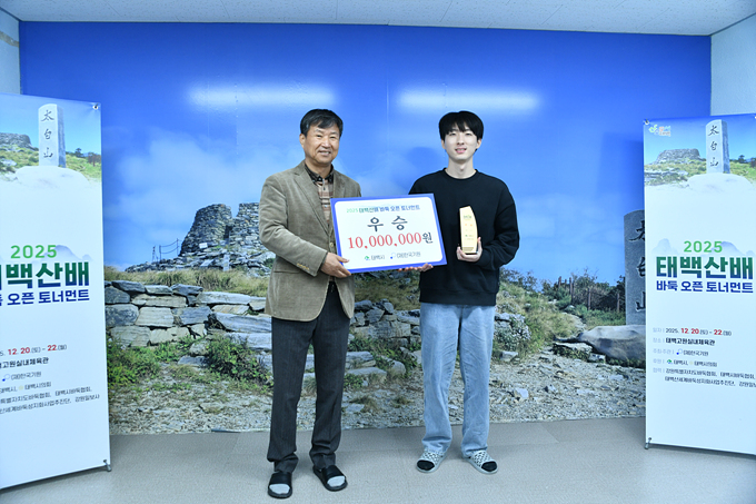 ·©Å· 135À§·Î ù °á½Â¹«´ë¿¡ ¿Ã¶ó ¿ì½Â±îÁö Àϱų½ È«¼¼¿µ 2´ÜÀº 8°Àü¿¡¼ ±è´Ùºó 5´Ü(54À§)À», 4°Àü¿¡¼ ¿øÁ¦ÈÆ 5´Ü(95À§)À» ³Ñ°í °á½Â¿¡ ¿Ã¶ó ÃÖÁ¾ ¿ì½Â °íÁö¸¦ ¹â¾Ò´Ù. ·©Å· 70À§ ÀÌ¿øµµ 9´ÜÀº 8°Àü¿¡¼ ÃÖ½Âö 3´Ü(125À§)À», 4°Àü¿¡¼´Â ±è½ÂÁø 7´Ü(33À§)À» ²ª°í °á½Â ÁøÃâ¿¡ ¼º°øÇßÀ¸³ª È«¼¼¿µ 2´Ü¿¡°Ô ¸·Çô ÁØ¿ì½Â¿¡ ¸¸Á·ÇØ¾ß Çß´Ù. °á½ÂÀüÀÌ ³¡³ Á÷ÈÄ À̾îÁø ½Ã»ó½Ä¿¡¼ ÅÂ¹é ¼¼°è¹ÙµÏ ¼ºÁöÈ »ç¾÷´Ü ÀÌÁ¤Çõ ´ÜÀåÀÌ ¿ì½ÂÀÚ È«¼¼¿µ 2´Ü¿¡°Ô »ó±Ý 1000¸¸ ¿øÀ», ÁØ¿ì½ÂÀÚ ÀÌ¿øµµ 9´Ü¿¡°Ô´Â »ó±Ý 500¸¸ ¿øÀ» Àü´ÞÇß´Ù. ÇÑÆí À̳¯ ´ëȸÀå¿¡´Â ÀÌ»óÈ£ Źé½ÃÀåÀÌ ¹æ¹®ÇØ °á½Â¿¡ ¿À¸¥ µÎ ±â»ç¸¦ °Ý·ÁÇß´Ù. ÀÌ»óÈ£ Źé½ÃÀåÀº ¡°Å¹é»ê¹è ¹ÙµÏ ¿ÀÇ Åä³Ê¸ÕÆ® °á½ÂÀü¿¡ Á÷Á¢ ¹æ¹®ÇØ ¼±¼öµé°ú °ü°èÀÚµéÀ» ÀÀ¿øÇÒ ¼ö ÀÖ¾î ¶æ±í°Ô »ý°¢ÇÑ´Ù¡±¶ó¸ç ¡°À̹ø ´ëȸ¸¦ ÅëÇØ Źé½Ã°¡ ¹ÙµÏÀ» ºñ·ÔÇÑ »ýȰüÀ°°ú ¹®È°¡ ÇÔ²² ¼ºÀåÇÏ´Â µµ½Ã·Î ´õ¿í ¾Ë·ÁÁö±æ ¹Ù¶õ´Ù¡±°í ÀüÇß´Ù. ¿ÃÇØ·Î µÎ ¹øÂ° ¿¸®´Â Źé»ê¹è´Â ÇÁ·Î¿Í ¾Æ¸¶°¡ ¸ðµÎ Âü°¡ÇÏ´Â ¿ÀÇ Åä³Ê¸ÕÆ®·Î Çѱ¹±â¿ø ¼Ò¼Ó ÇÁ·Î±â»ç 63¸í°ú ¾Æ¸¶Ãß¾î 40¸íÀ¸·Î ÃÑ 103¸íÀÌ ÃâÀüÇØ ÃÖÁ¾ ¿ì½ÂÀÚ¸¦ °¡·È´Ù. 2025 Źé»ê¹è ¹ÙµÏ ¿ÀÇ Åä³Ê¸ÕÆ®´Â Źé½Ã¤ýŹé½ÃÀÇȸ°¡ ÈÄ¿øÇϰí Çѱ¹±â¿øÀÌ ÁÖÃÖÇÏ¸ç °¿øµµ¹ÙµÏÇùȸ¤ýŹé½Ã¹ÙµÏÇùȸ¤ýÅÂ¹é ¼¼°è¹ÙµÏ ¼ºÁöÈ »ç¾÷´Ü¤ý°¿øÀϺ¸»ç°¡ Çù·ÂÇß´Ù. ¿ì½Â »ó±ÝÀº 1000¸¸ ¿ø, ÁØ¿ì½Â »ó±ÝÀº 500¸¸ ¿øÀ̸ç, »ý°¢½Ã°£Àº ½Ã°£´©Àû(ÇǼÅ) ¹æ½ÄÀ» ÅÃÇØ °¢ÀÚ 10ºÐ¿¡ Ãß°¡½Ã°£ 15Ãʸ¦ ÁÖ¾ú´Ù. ![]() ¡ã ¿ì½ÂÀÚ È«¼¼¿µ 2´Ü(¿À¸¥ÂÊ)°ú ½Ã»óÀÚ ÀÌÁ¤Çõ ´ÜÀå.