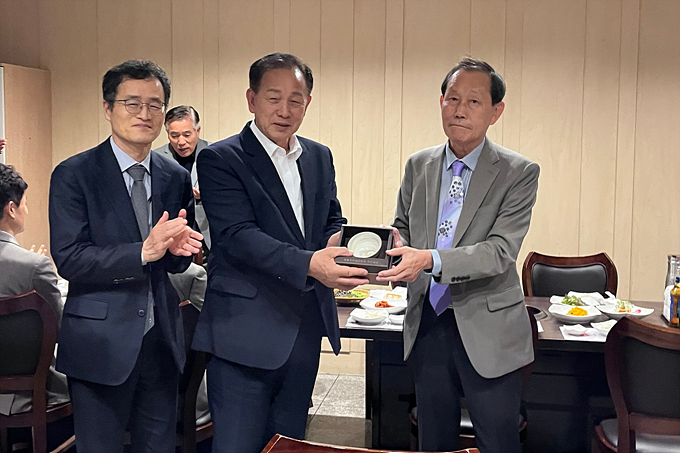 ![]() ¡ã ¾çÆÀ °¨µ¶ÀÌ ½ÅÇö±¹ ¹®°æ½ÃÀå(¿À¸¥ÂÊ)¿¡°Ô ¼±¼ö´Ü ±â³ä »çÀιÝÀ» ÁõÁ¤Çß´Ù.